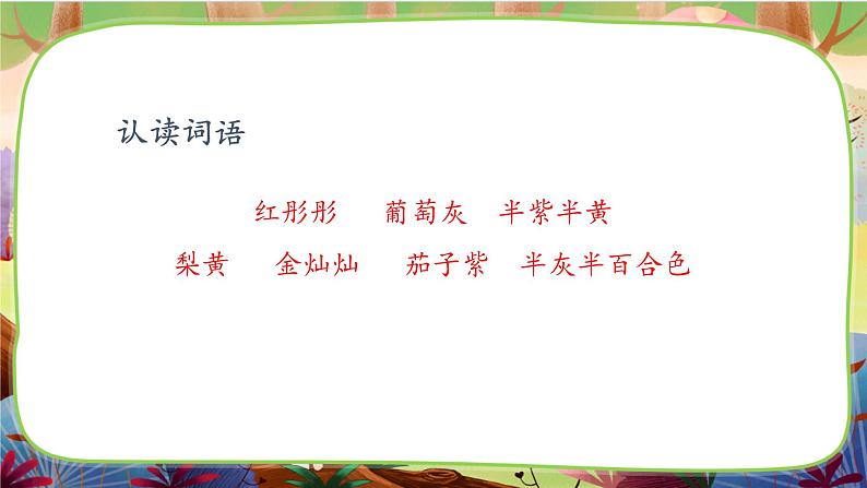 红彤彤 金灿灿 ( ) ( )葡萄灰 茄子紫 ( ) ( )半紫半黄 半灰半百合色 ( ) ( )