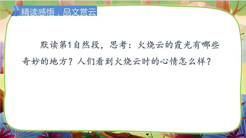 这篇课文是以一个孩子的口吻写的,正是对大自然的无比热爱、认真观察,才有了这奇特瑰丽的火烧云。