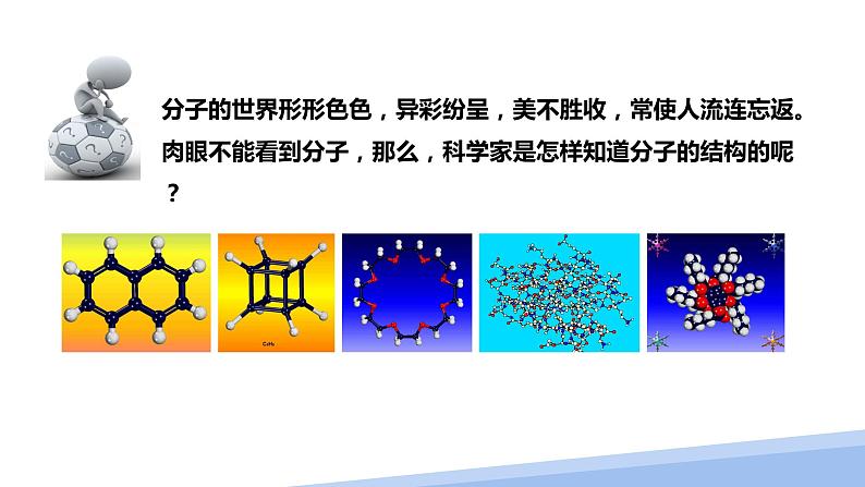 分子的世界形形色色,异彩纷呈,美不胜收,常使人流连忘返。肉眼不能看到分子,那么,科学家是怎样知道分子的结构的呢?