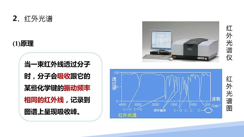 当一束红外线透过分子时,分子会吸收跟它的某些化学键的振动频率相同的红外线,记录到图谱上呈现吸收峰。