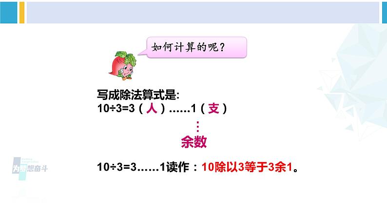 10支铅笔,每人分3支,可以分给( )人,还剩( )支。