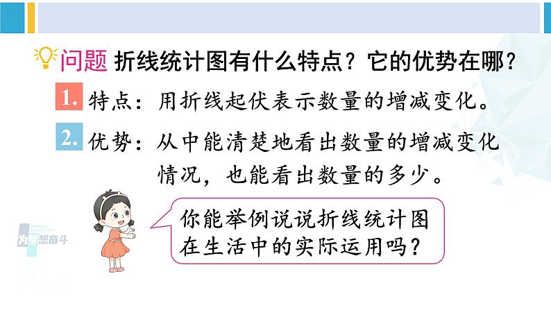 特点:用折线起伏表示数量的增减变化。