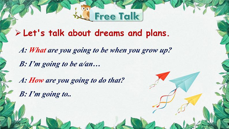 A: What are yu ging t be when yu grw up?B: I’m ging t be a/an…