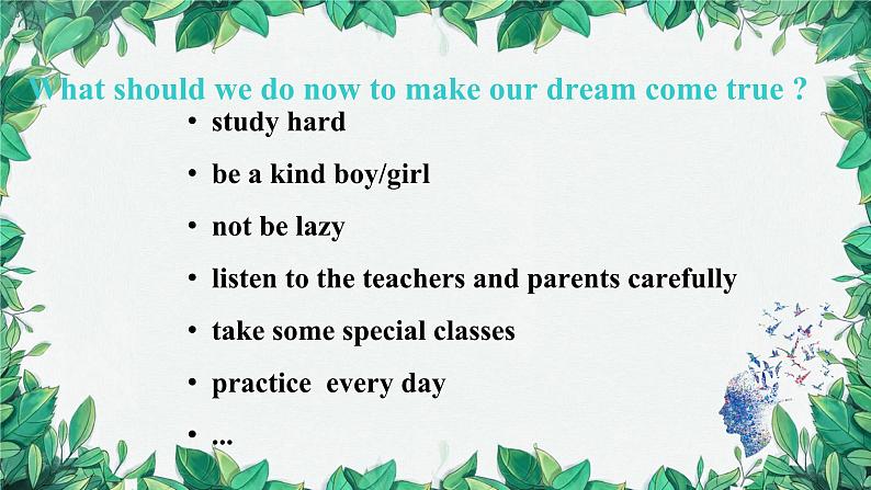 study hardbe a kind by/girlnt be lazylisten t the teachers and parents carefullytake sme special classespractice every day...
