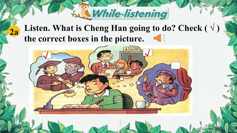 Listen. What is Cheng Han ging t d? Check ( √ ) the crrect bxes in the picture.