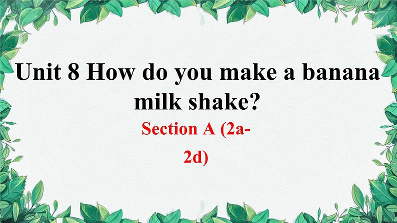 人教新目标 (Go for it) 版八年级上册Section A教学ppt课件: 这是一份人教新目标 (Go for it) 版八年级上册<a href="/yy/tb_c91699_t3/?tag_id=26" target="_blank">Section A教学ppt课件</a>,共26页。PPT课件主要包含了water,tea,milk,Coca-Cola,coffee,milk shake,食物搅拌器,hungry,peel,cut up等内容,欢迎下载使用。