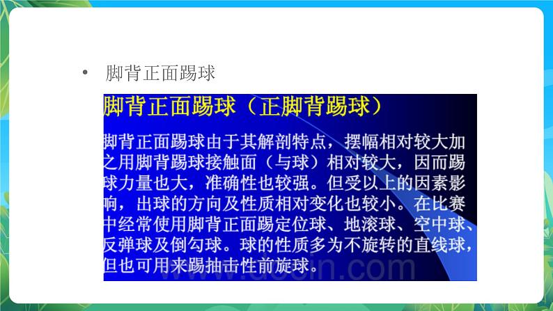 1,知识目标:了解脚内侧踢地滚球和脚内侧接地滚球的动作要点以及在足球比 赛中 的作用 。