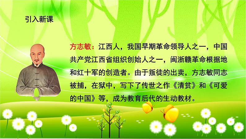 展开小学语文人教部编版五年级下册清贫优质课件ppt: 这是一份小学语文人教部编版五年级下册清贫优质课件ppt,共35页。PPT课件主要包含了方志敏,作者简介,检测字词,初读课文,圈动词,多音字,贪婪卑鄙无耻,品读重点,侧面描写,矜持不苟舍己为公等内容,欢迎下载使用。