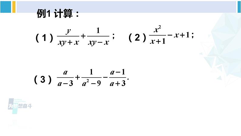 在前面的课程中,我们学习了同分母分式的加减法法则和异分母分式的加减法法则.