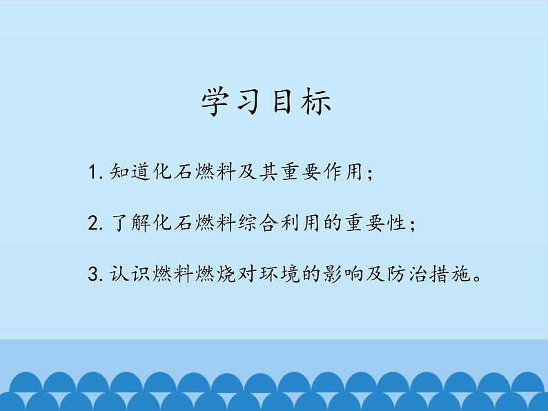 展开1.知道化石燃料及其重要作用; 2.了解化石燃料综合利用的重要性;3.认识燃料燃烧对环境的影响及防治措施。
