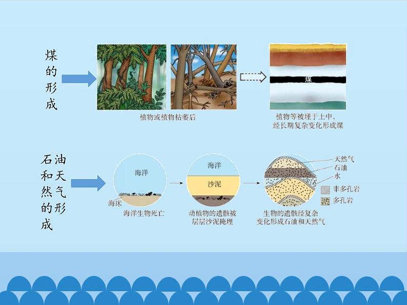 化学八年级全册第二节 化石燃料的利用教课ppt课件: 这是一份化学八年级全册<a href="/hx/tb_c12404_t3/?tag_id=26" target="_blank">第二节 化石燃料的利用教课ppt课件</a>,共27页。PPT课件主要包含了化石燃料的形成,煤的形成,石油天然气的形成,化学能,机械能,化石燃料的燃烧,丙烷丙烯丁烷丁烯,天然气主要成分甲烷,大家猜一猜,石油天然气等内容,欢迎下载使用。