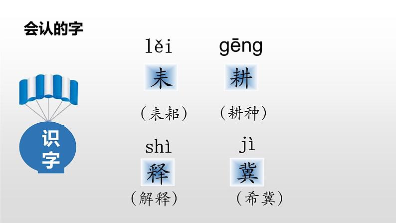 【讲评】本题考查学生对生字读音的掌握情况。“宋、释”是翘舌音,“耕”是前鼻韵,“冀”的发音的标准。【参考答案】sóng gēng shì jì