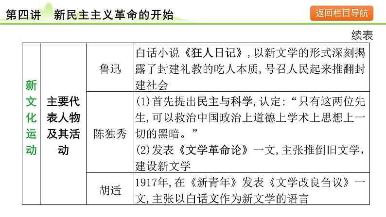中考历史复习中国近代史第四单元新民主主义革命的开始教学课件: 这是一份中考历史复习中国近代史第四单元新民主主义革命的开始教学课件,共41页。PPT课件主要包含了陈独秀,青年杂志,文学革命,白话文,狂人日记,巴黎和会,外争主权,反帝反封建,青年知识分子,社会革命等内容,欢迎下载使用。