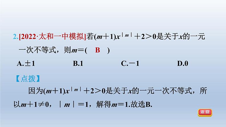2.[2022·太和一中模拟]若(m+1)x|m|+2>0是关于x的一元