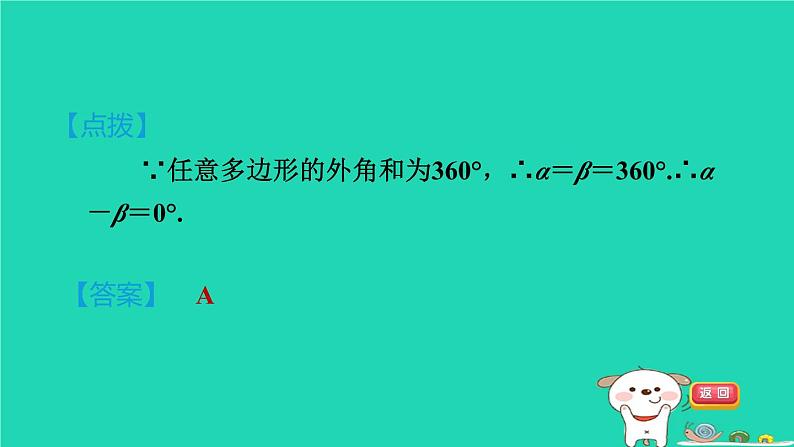 ∵任意多边形的外角和为360°,∴α=β=360°.∴α-β=0°.