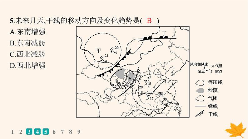 5.未来几天,干线的移动方向及变化趋势是( )A.东南增强B.东南减弱C.西北减弱D.西北增强