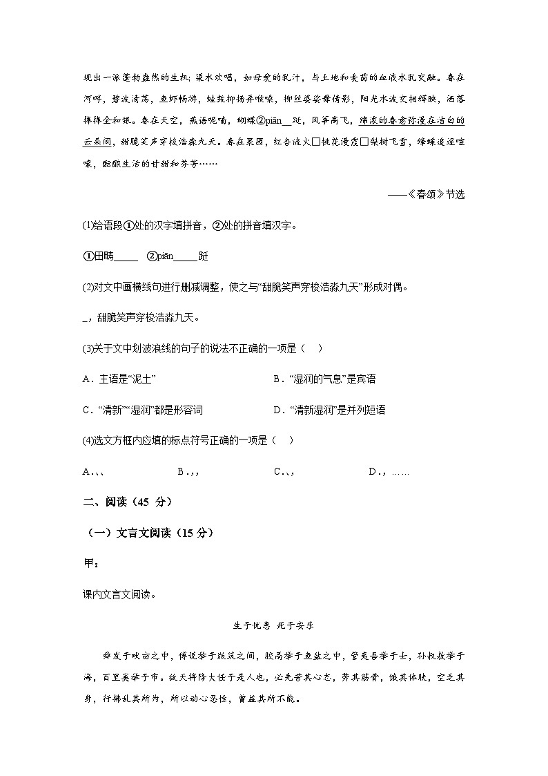 辽宁省沈阳市沈河区2023-2024学年七年级上学期期末考试语文试题: