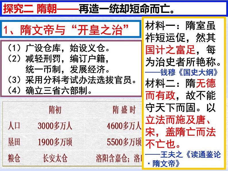 人教统编版第二单元 三国两晋南北朝的民族交融与隋唐统一多民族封建国家的发展第6课 从隋唐盛世到五代十国 评课课件ppt