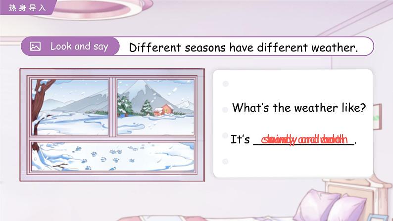 Mr Jnes: Which seasn d yu like best, Mike? Mike: Winter. I like snw. Mr Jnes: I like snw, t. Which seasn d yu like best, Wu Binbin? Wu Binbin: Spring. It’s pretty. Mr Jnes: Yes, it is.