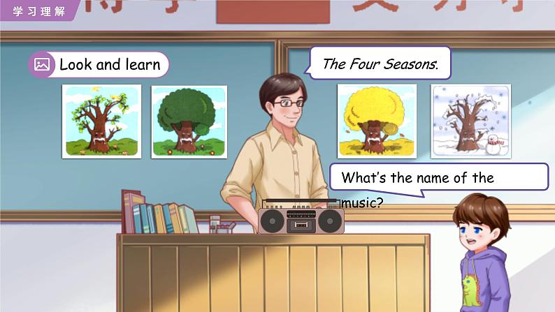 Mr Jnes: D yu like the music, children? Mike: Yes. It’s very beautiful. What is it? Mr Jnes: The Fur Seasns. Tday we’ll draw the seasns.