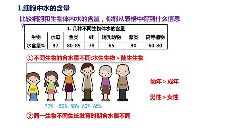 比较细胞和生物体内水的含量,你能从表格中得到什么信息?