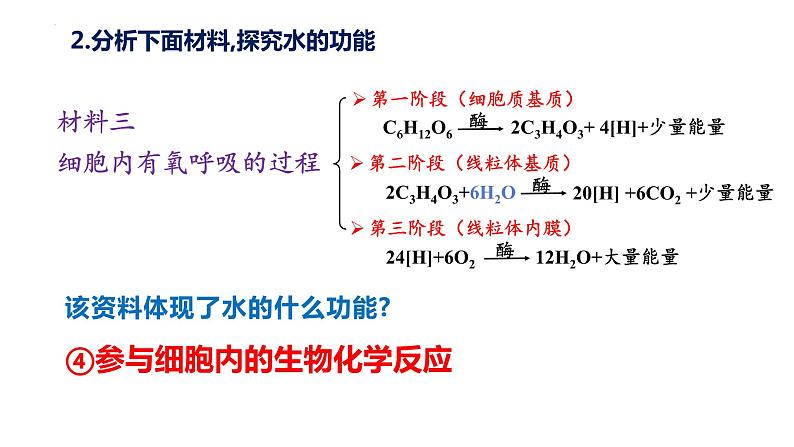 材料二细胞中的物质:如各种离子、氨基酸、葡萄糖等,只有溶于水中才能参与细胞中的各种代谢。
