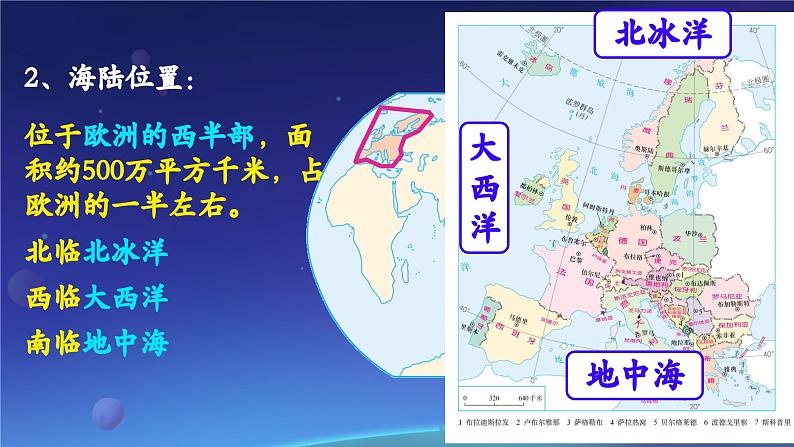 位于欧洲的西半部,面积约500万平方千米,占欧洲的一半左右。