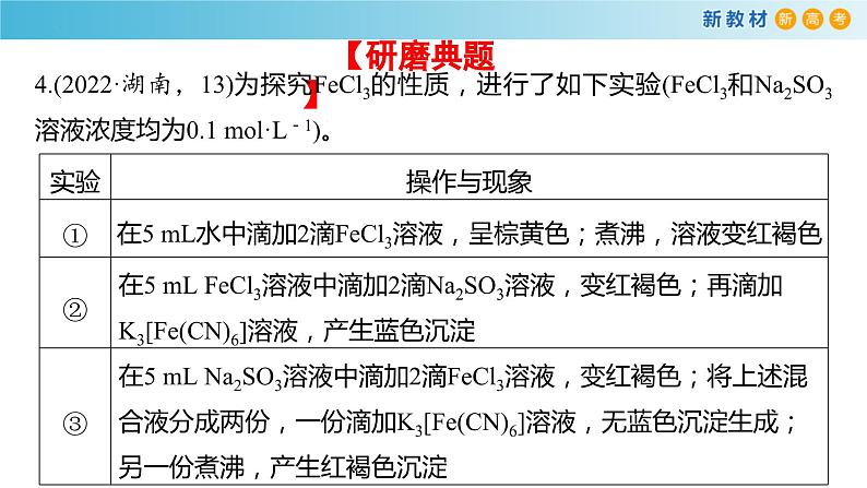 4.(2022·湖南,13)为探究FeCl3的性质,进行了如下实验(FeCl3和Na2SO3溶液浓度均为0.1 ml·L-1)。