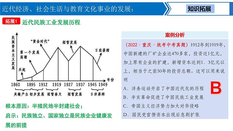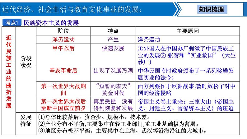 中考历史一轮复习考点梳理突破结构化课件第12讲 近代经济、社会生活与教育文化事业的发展(含答案)