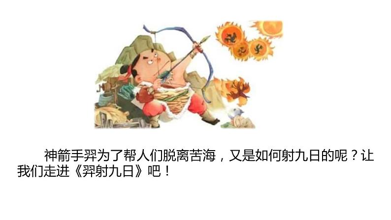 这是一份小学羿射九日教学演示ppt课件,共20页。PPT课件主要包含了学习目标,羿射九日,板书设计,为人类造福,看拼音写词语等内容,欢迎下载使用。