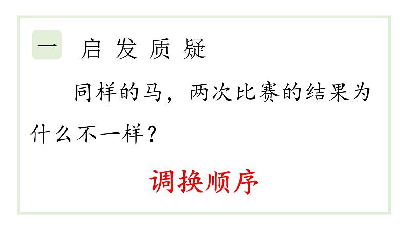 “齐威王每个等级的马都比田忌的强。”“还是原来的马,只调换一下出场顺序就转败为胜了。”