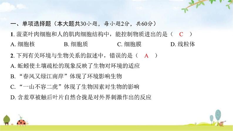 2024年广东省初中学业水平考试生物学仿真试卷(五)课件