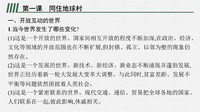 这是一份九年级下册第一单元 我们共同的世界 复习课件-2024年中考道德与法治一轮复习,共40页。PPT课件主要包含了第一课同住地球村等内容,欢迎下载使用。