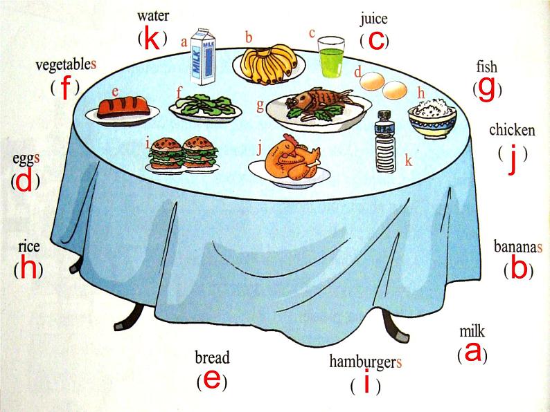 这是一份初中英语仁爱科普版七年级上册Unit 3 Getting togetherTopic 3 What would you like to drink?课文内容课件ppt,共21页。PPT课件主要包含了bread,egg,milk,rice,fish,chicken,juice,apples,bananas,eggs等内容,欢迎下载使用。