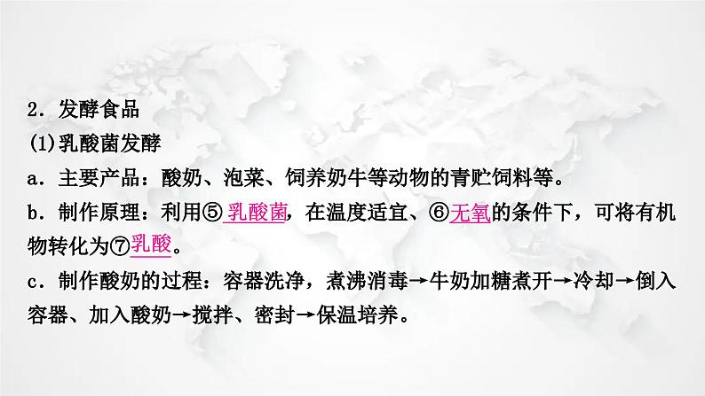 第9单元 生物技术第25章 生物技术微生物产品发酵现代生物技术乳酸菌无氧乳酸曲霉和毛霉酵母菌酒精米曲霉淀粉蛋白质无氧沼气产甲烷细菌基因DNA转基因技术生物性状胚胎移植相同濒危动物器官移植×√√×DBD