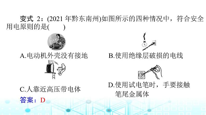 变式 2:(2021 年黔东南州)如图所示的四种情况中,符合安全