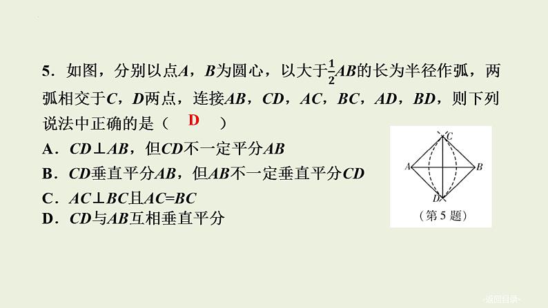 B组提升5.如图,延长矩形ABCD的边BC至点E,使CE=BD,连接AE,如果∠ABD=50°,那么∠BAE的度数是 ( )