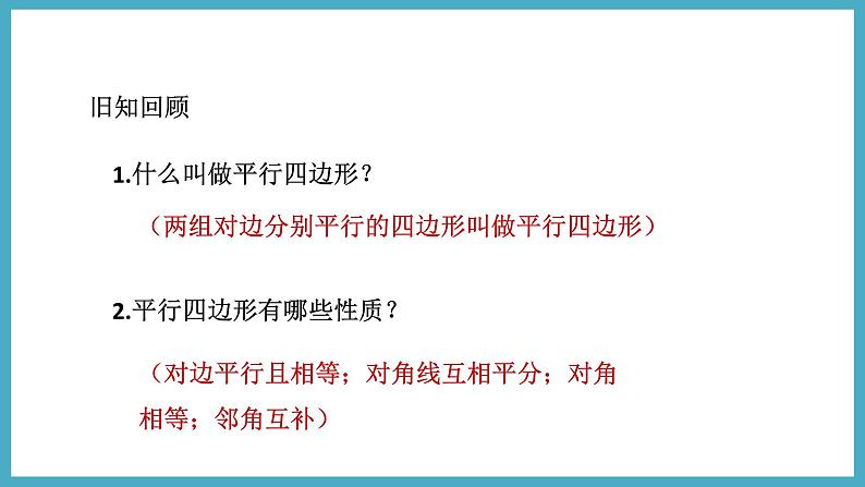 1.什么叫做平行四边形?2.平行四边形有哪些性质?