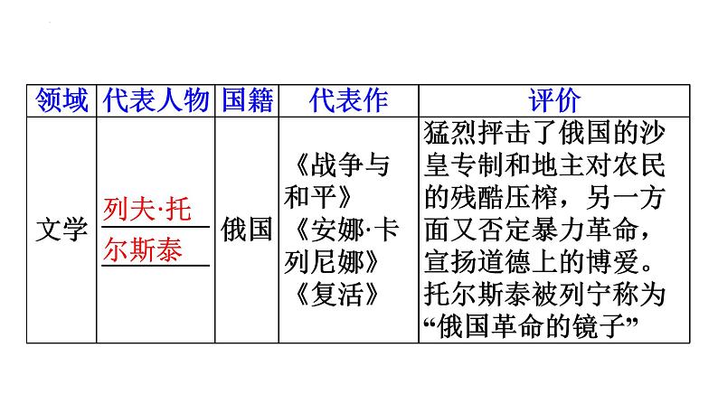 这是一份初中历史人教部编版九年级下册第7课 近代科学与文化课堂教学ppt课件,共22页。PPT课件主要包含了生物学家,巴尔扎克,《欧也妮·葛朗台》,托尔斯泰,主要作品,俄国伟大作家,《安娜·卡列尼娜》,《复活》,称谓代表作,荷兰杰出画家等内容,欢迎下载使用。