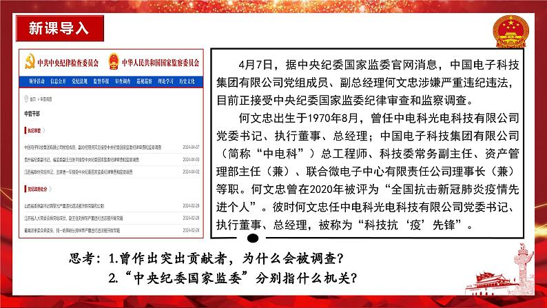 初中政治 (道德与法治)人教部编版八年级下册国家监察机关图文课件ppt