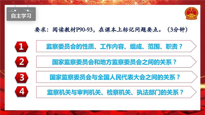 展开初中政治 (道德与法治)人教部编版八年级下册国家监察机关课堂教学课件ppt: 这是一份初中政治 (道德与法治)人教部编版八年级下册<a href="/zz/tb_c158950_t3/?tag_id=26" target="_blank">国家监察机关课堂教学课件ppt</a>,共26页。PPT课件主要包含了自学导航,阅读分享等内容,欢迎下载使用。