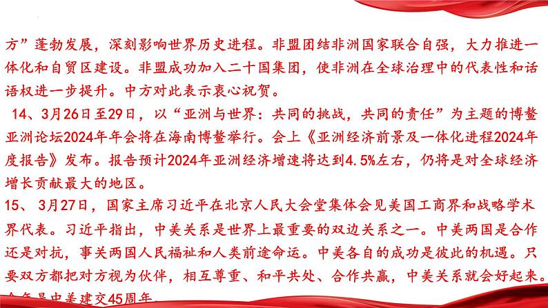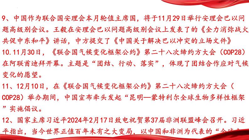 促进世界的和平与发展,中国外交大事大盘点 课件 2024年中考道德与法治 时政热点专题复习