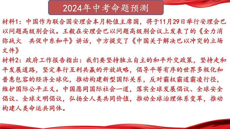 关注世界局势 关心人类命运 课件 2024年中考道德与法治 时政热点专题复习: