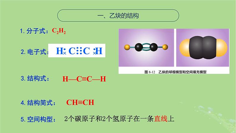 1. 了解乙炔的性质与结构2.认识加成反应与取代反应的区别