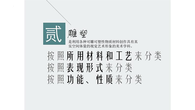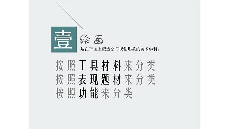 美术是个大家庭关于美术广义来说,书法、篆刻、摄影、摄像、动画、新媒体艺术和电脑美术也归入美术的范围之内。四大门类壹绘画是在平面上塑造空间视觉形象的美术学科。按照工具材料来分类按照表现题材来分类按照功能来分类壹按照工具材料分类壹按照表现题材分类壹按照功能分类贰雕塑是利用各种可雕可塑性物质材料创作具有真实空间体量的视觉艺术形象的美术学科。按照所用材料和工艺来分类按照表现形式来分类按照功能、性质来分类壹按照所用材料和工艺来分类壹按照表现形式来分类壹按照功能、性质分类叁设计是指运用艺术手段进行构思与计划的创造性活动,以满足人们物质与精神的需求改变了人仅仅是观赏者的地位肆建筑是满足人们各种生活需要由内部和外部空间形成的构筑体,是实用功能与审美价值、工程技术与艺术手段紧密结合的美术学科。宫殿建筑故宫金字塔坛庙建筑 中华民族祭祀天地日月山川祖先社稷的建筑天坛孔庙宗教建筑布达拉宫圣母百花大教堂园林建筑 居民建筑皇家园林 圆明园苏州园林居民建筑北京胡同福建土楼湘西吊脚楼纪念性建筑中国人民抗日战争纪念馆巴黎凯旋门纽约帝国大厦巴黎埃菲尔铁塔北京鸟巢美术与科技结合的表现形式现代科学技术手段的出现,如摄影、摄像、电脑图像处理和声、光、电等多媒体材料的综合运用。 1、列举美术四大门类及其代表作品 2、列举一些自己喜欢的美术门类及其代表性作品,并说出喜欢的理由。