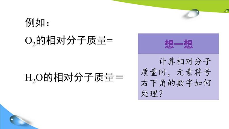 例如:O2的相对分子质量=H2O的相对分子质量=