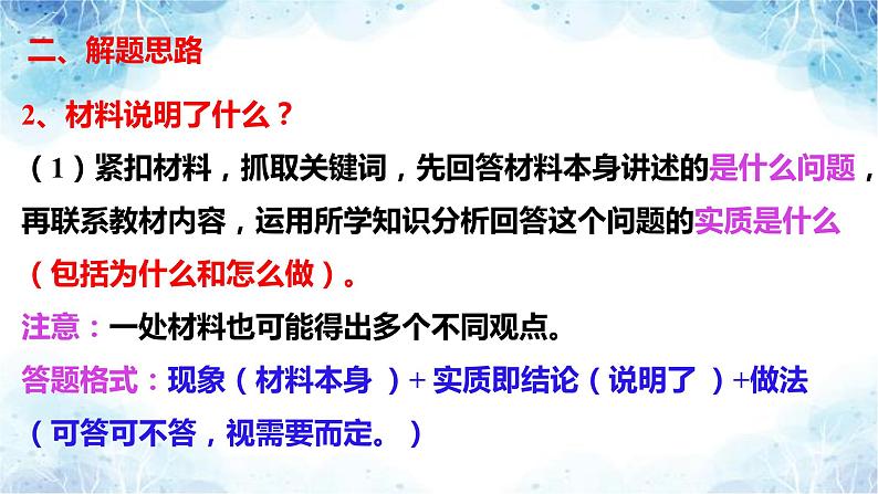 这是一份专题02 做法类主观题-冲刺2024年中考道德与法治主观题答题技巧与模板集训(统编版),文件包含做法类主观题之解题思路课件pptx、做法类主观题集训docx、做法类主观题答案docx等3份试卷配套教学资源,其中试卷共6页, 欢迎下载使用。