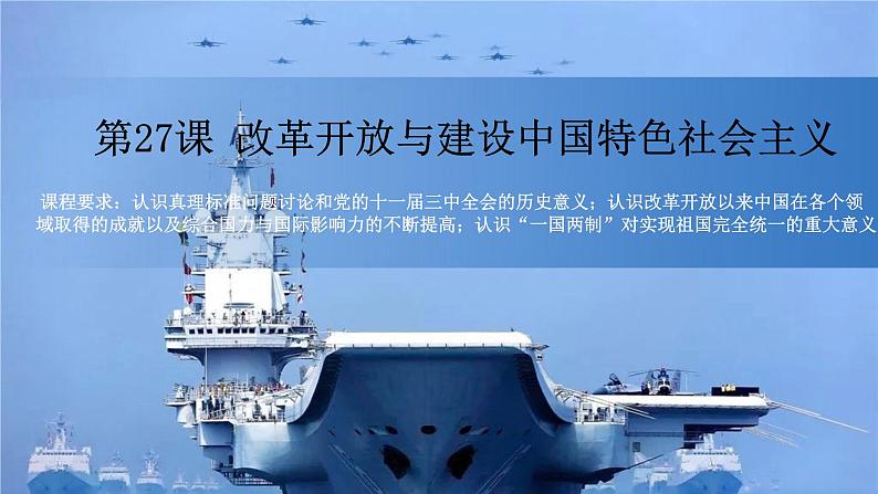 这是一份中职历史部编高教版(2023)中国历史第27课 改革开放与建设中国特色社会主义教课内容ppt课件,共27页。PPT课件主要包含了“两个凡是”,第一章,中共十一届三中全会,平反冤假错案,第二章,改革开放全面展开,社会主义精神文明建设,第三章,“一国两制”的提出,“一国两制”概念等内容,欢迎下载使用。