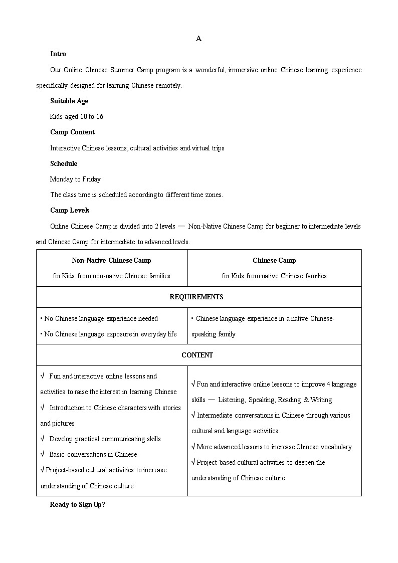 Online Chinese Camp is divided int 2 levels — Nn-Native Chinese Camp fr beginner t intermediate levels and Chinese Camp fr intermediate t advanced levels.