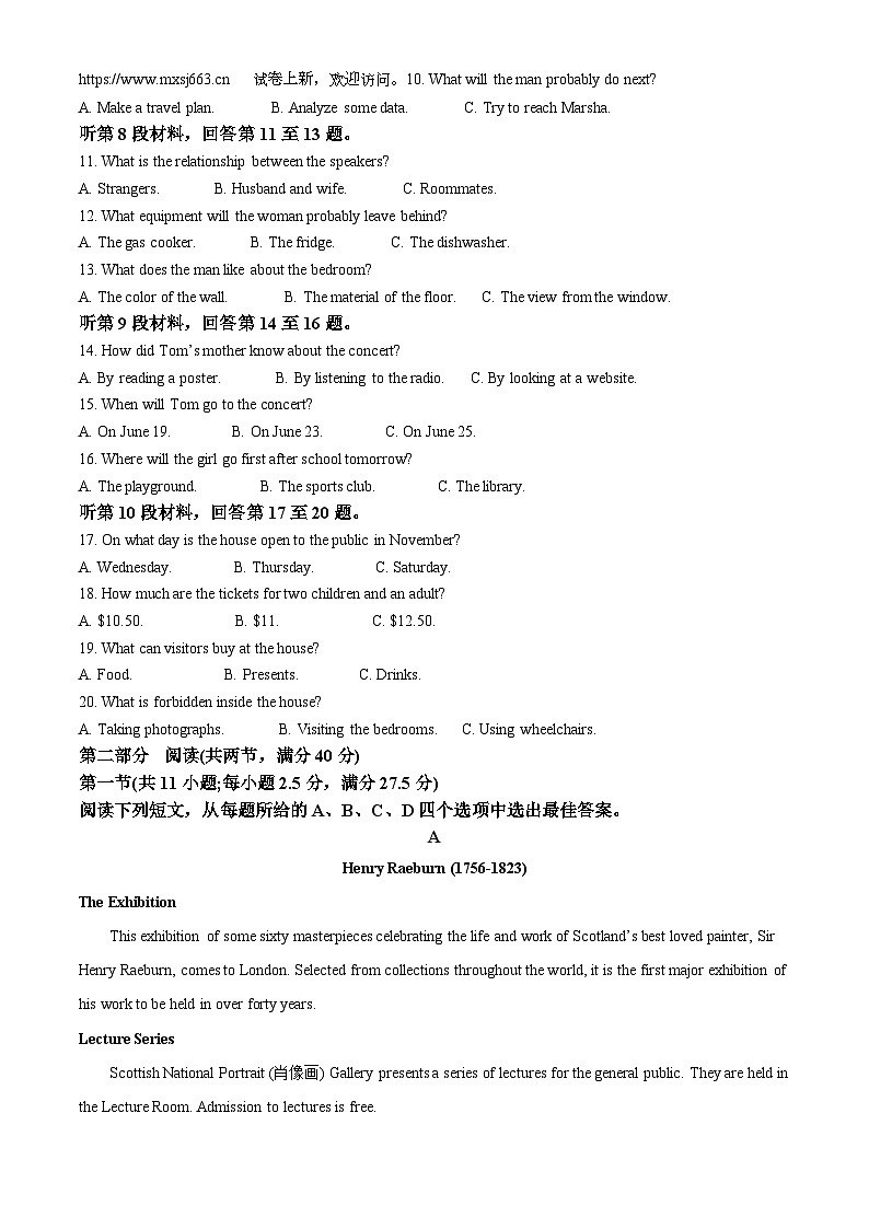 【导语】这是一篇应用文。文章主要介绍了为纪念苏格兰最受欢迎的画家亨利·雷伯恩爵士进行的展览的相关情况。